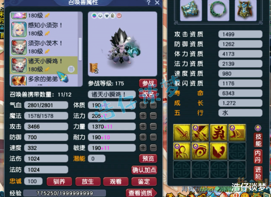 9技能隐攻自在心猿,也是一只瞬击宝宝,赐福了4个超级技能!