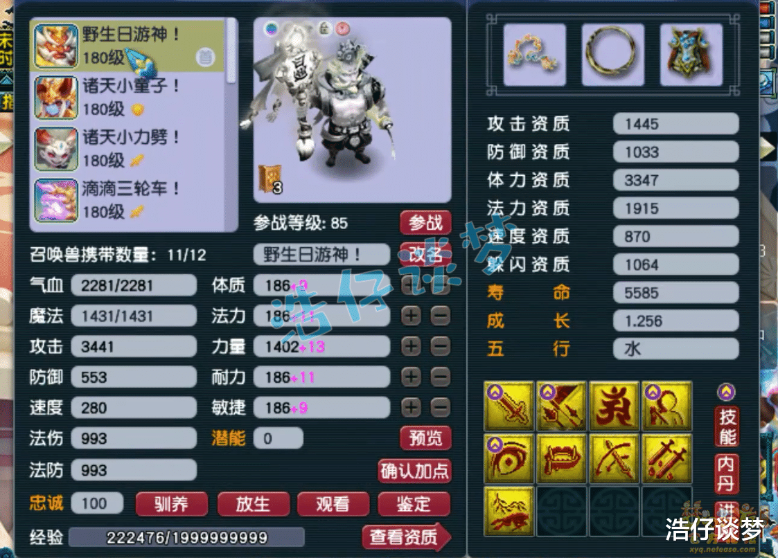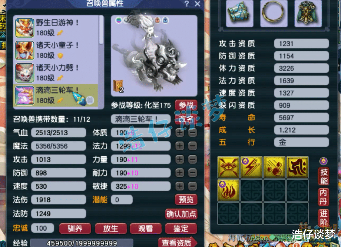 Hello大家好,我是浩仔!关注浩仔,每天给你带来最新梦幻西游游戏资讯!以下点评仅代表个人意见,不代表官方或平台立场。自从召唤兽可以赐福之后,受到了不少玩家的喜爱,因为赐福可以从另一种形式上提升召唤兽的属性!而且在最近的一次调整中,召唤兽赐福也进行了调整,如果你的召唤兽成功赐福4个技能,进入战斗有几率同时生效两个超级技能!这简直是质的飞跃,也导致很多玩家在疯狂追求4赐福!这不今天浩仔要给大家带来的,就是一个追求极致4赐福的玩家!他还是一个个性角色,玩的是虎贲大唐,一起来欣赏一下吧!