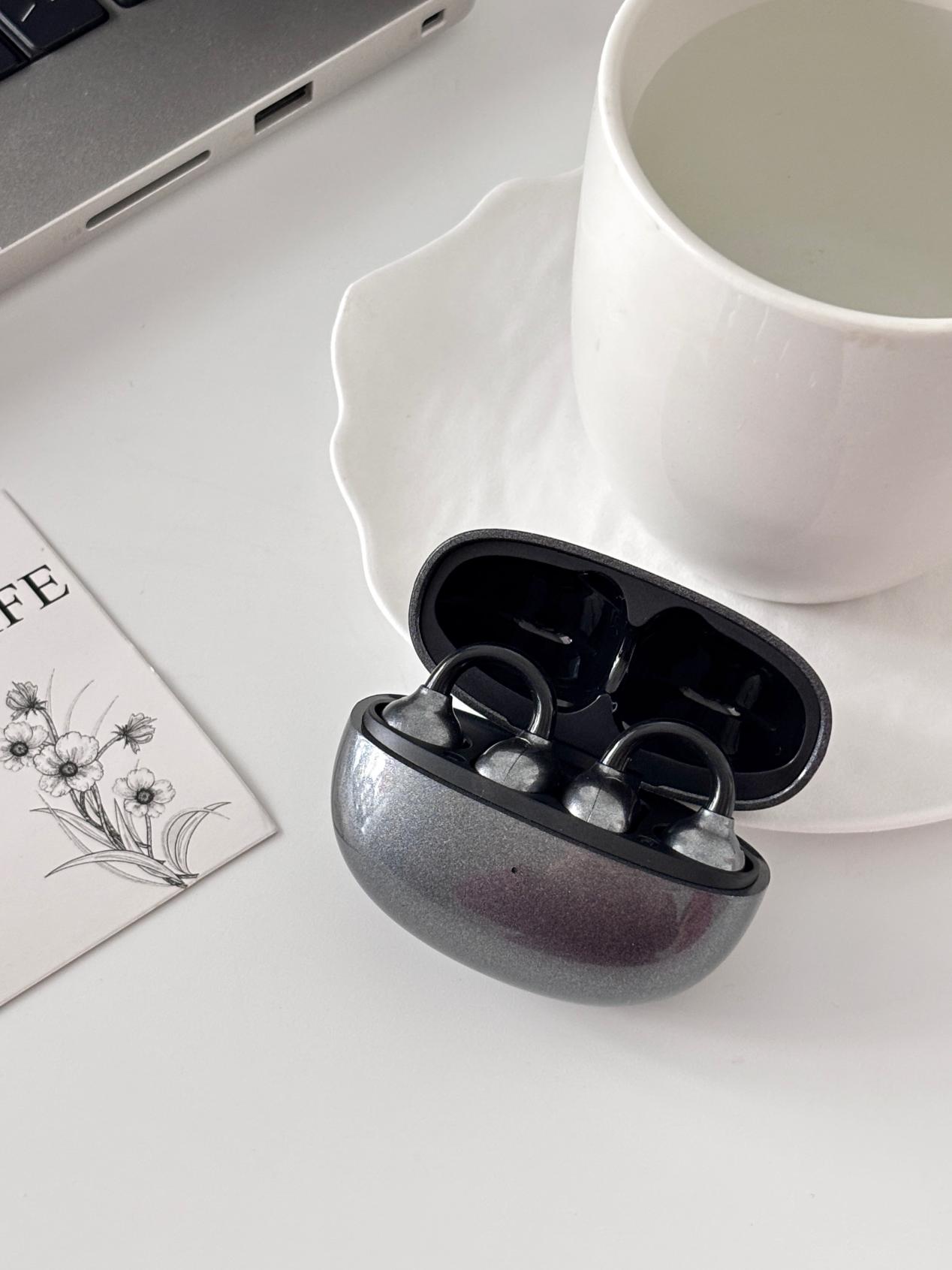 单耳重量5克,重量控制得不错,机身采用软胶包裹设计,和耳骨接触的地方很柔软,不会硌耳朵。人体工学设计很到位,夹在耳骨上很稳固,日常走路、跑步、撸铁这类中轻度运动都不会滑落,就算戴久了,耳骨也不会有明显的酸胀感。唯一的小缺点是充电仓的体积稍大,放口袋里会有点占地方,放包里完全没问题。