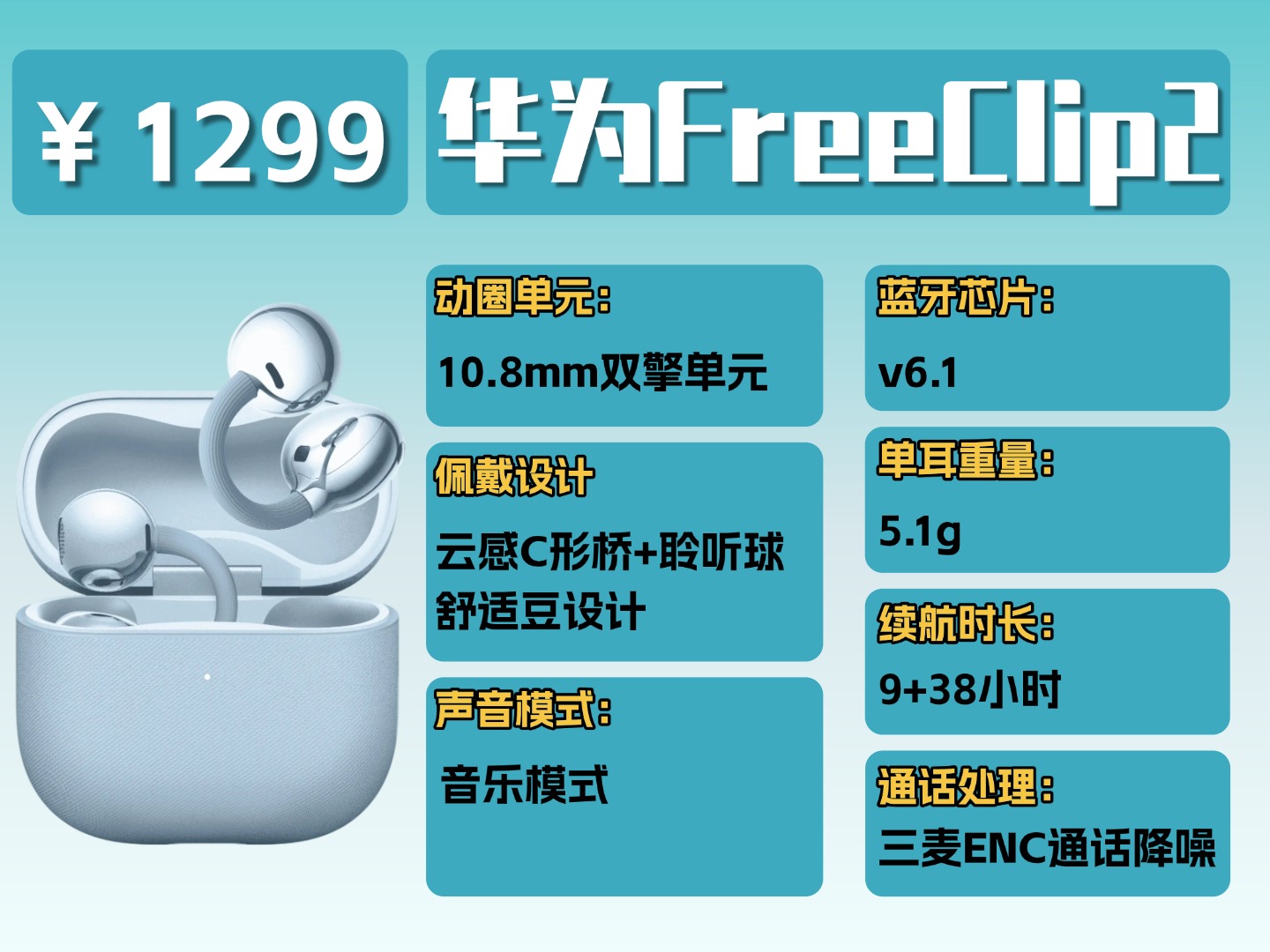 华为FreeClip2价格:1299 元推荐程度:★★★★★