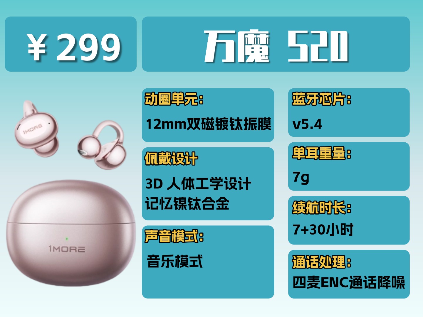 推荐理由:500 元以内音质最好的耳夹式耳机,性价比极高,闭眼入,不踩雷!