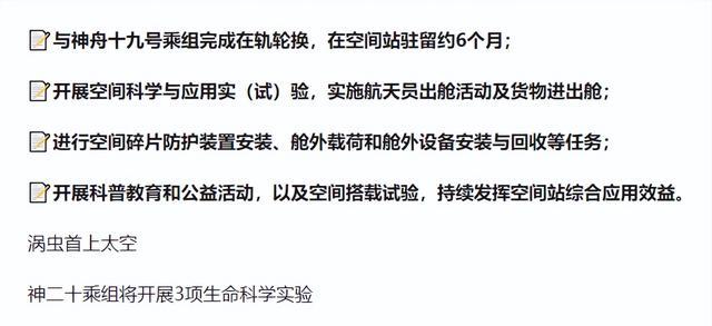 随着神舟二十号发射时间的到来,更多关于此次飞行任务清单也被曝光。