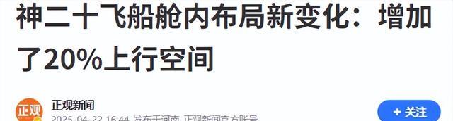 正观新闻2025.4.22——神二十飞船舱内布局新变化:增加了20%上行空间