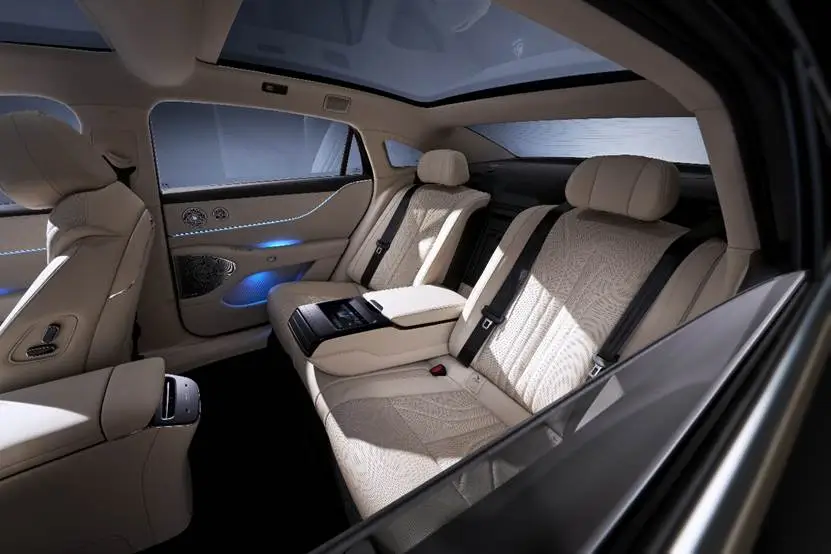舒适性配置上,四个座椅均配备座椅通风/加热/按摩功能,副驾驶席提供零重力座椅,另外还会配备后排小桌板、8英寸液晶屏、6.6L智能冷暖冰箱以及23扬声器音响系统等等。