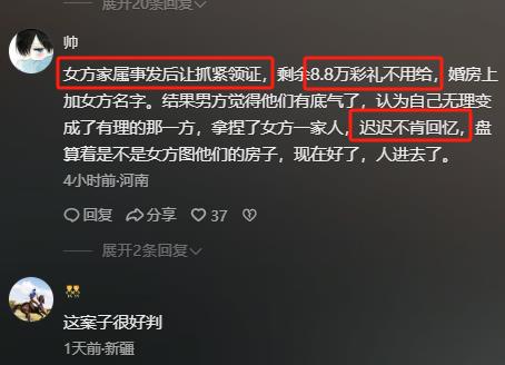 消息一出,舆论哗然,不少人在评论区控诉女方是骗婚的惯犯。