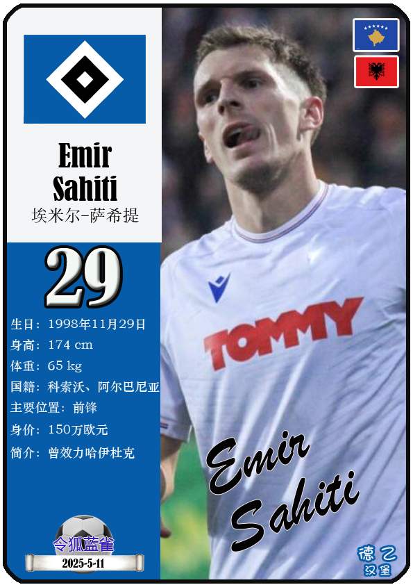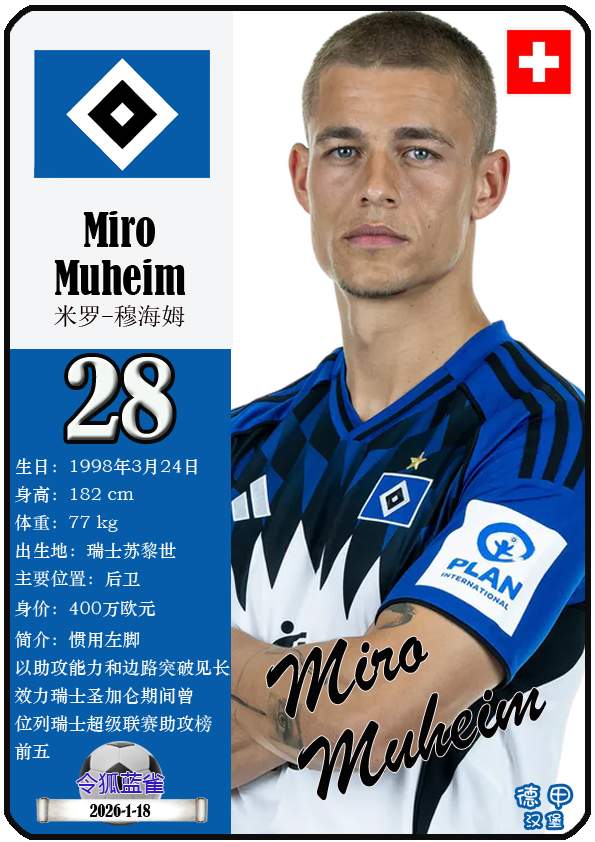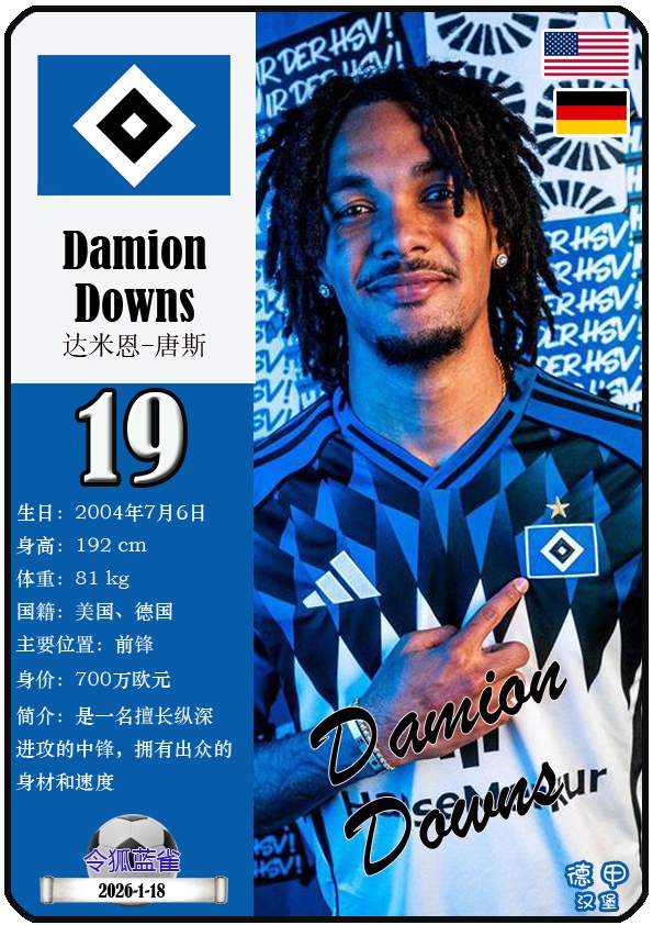 球星卡(德甲):汉堡足球俱乐部29人一览(25/26赛季)