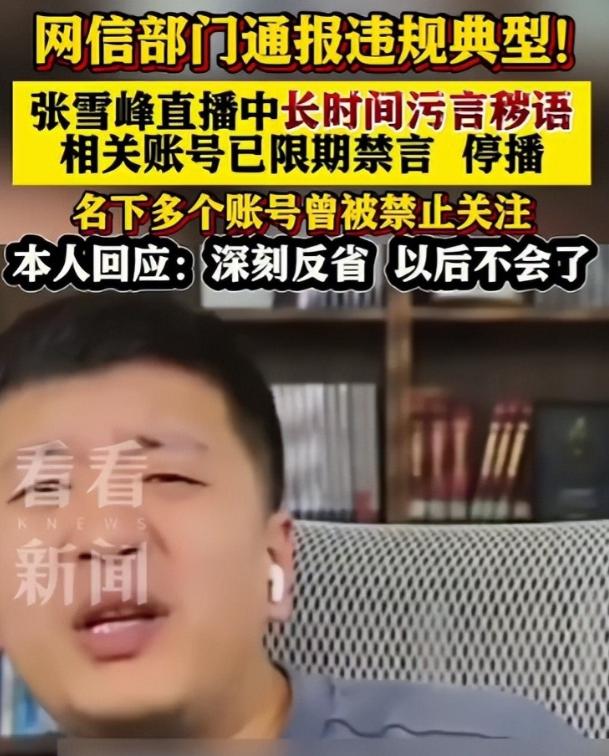 随后网信部门对张雪峰作出限期禁言、停播整改的处罚,他的公益讲座邀约也被全部取消。