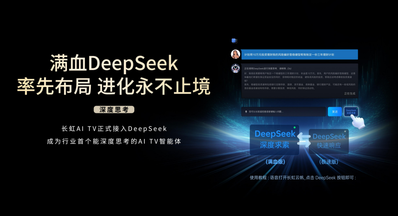 AI无处不在,小白无所不能。智能交互是长虹电视追光系列Q10Air的一大亮点,其搭载了行业首发沧海智能体,用一句话总结它的能力,就是你想知道的它都知道、你所需要的都能满足;它能实现超级搜索,解放你的双手、明白你的需求;它能实现人感交流,期间无须连续唤醒,就像跟朋友一样任意问、随便聊。它还能做到手机OTA一样的在线升级、实现持续进化,常用常更新,越用越好用,无最终形态。并且它也接入了满血版DeepSeek,成为行业首批能深度思考的AI TV智能体。