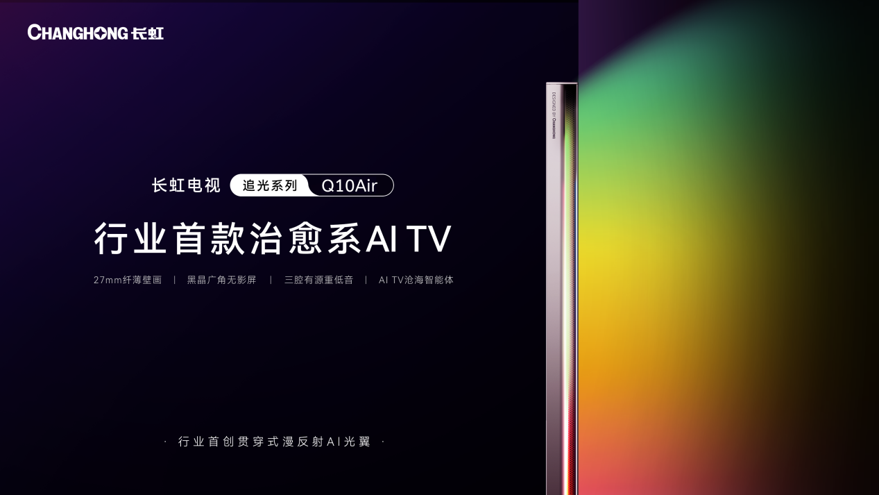 作为行业首款治愈系AI TV,长虹Q10Air搭载黑晶广角无影屏、首创贯穿式漫反射AI光翼、27mm极致纤薄、AI画质修复、三腔有源重低音、AI沧海智能体、魔方桌面、四边平嵌0距贴墙等功能和技术。通过这款创造性、革命性的电视产品,长虹重新定义AI智能电视的行业标准,再次巩固了其在人工智能电视领域的引领者地位。