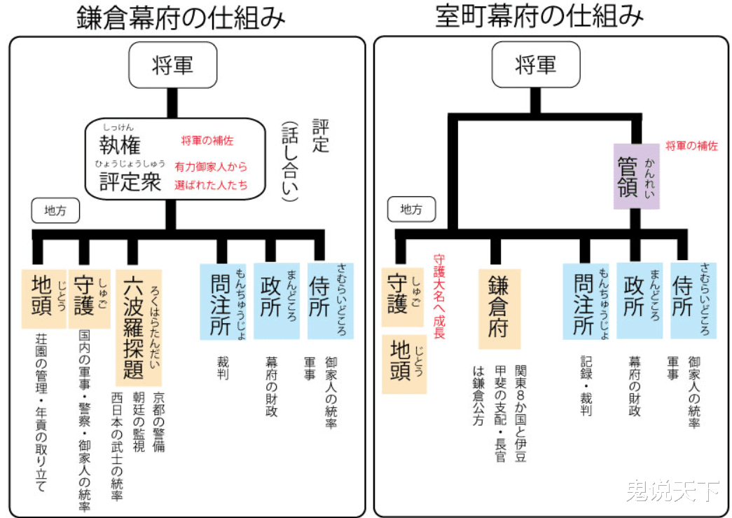 “观应扰乱”之后,足利幕府自以为“变更统治家族的镰仓幕府”的定位和文武分离的“公武共治”理念彻底玩不下去了,以御家人为根基的“御恩奉公制”也因为守护大名和国人众的崛起而解体。到了这个时候,足利家才真正抛弃镰仓幕府的旧东西,开始探索建立属于自己的制度体系和政治理念。