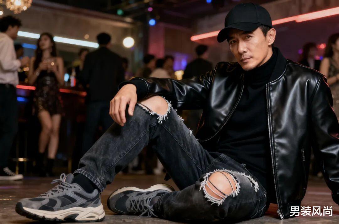 如果是和朋友聚会,想穿得潮一点,可以选“黑色仿皮立领夹克+黑色高领打底+破洞牛仔裤+老爹鞋”。黑色高领打底贴肤,凸显颈部线条;破洞牛仔裤选膝盖处小破洞的,不过分夸张;老爹鞋增加整体的街头感,再戴一顶黑色棒球帽,轻松融入聚会氛围。
