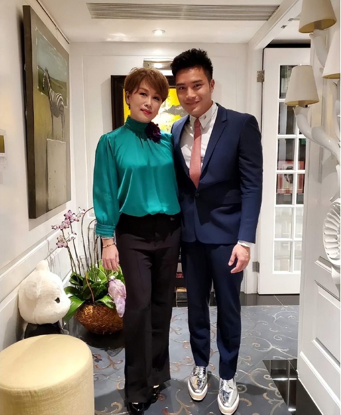 和自己的儿子站在一起,会让人起疑这是否是老夫少妻。