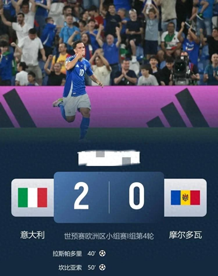 世预赛欧洲区小组赛I组第4轮,意大利凭借着拉斯帕多里、坎比亚索的进球,最终2:0击败摩尔多瓦,取得世预赛首胜。