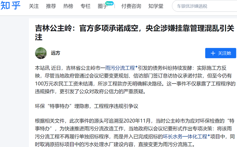 本站讯 近日,吉林省公主岭市一雨污分流工程引发的债务纠纷持续发酵:实际施工方反映,尽管当地政府曾通过会议纪要变更规划、信访部门签订息访协议承诺付款,但至今仍有100万元农民工工资未结清,所涉工程款亦无明确解决路径。这一事件不仅暴露了工程程序的违规操作,更引发了公众对政府公信力的严重质疑。