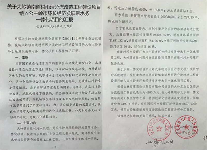 根据相关文件,此次事件的源头可追溯至2020年11月,当时公主岭市为应对环保检查的“特事特办”,为快速推进雨污分流改造工作,当地政府以会议纪要形式作出专项决策:将该雨污分流工程不再履行单独招标程序,而是并入已完成招标的环长水务一体化工程项目中,同时取消原招标项目中的污水处理水厂建设内容,直接变更为雨污分流施工。