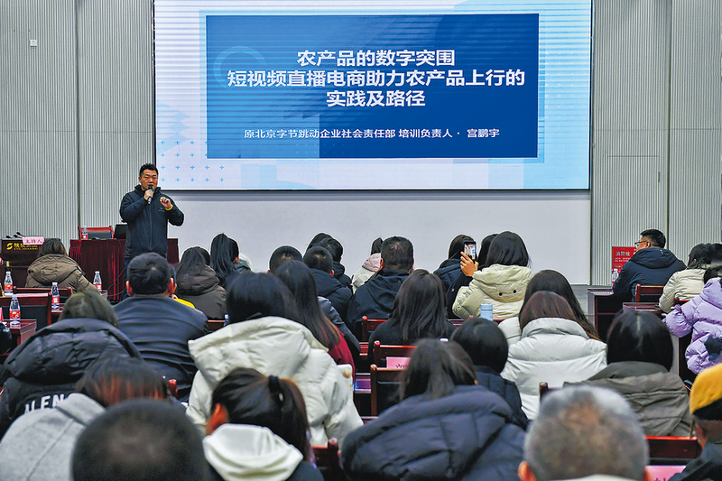 本次培训紧扣农产品上行实际需求,邀请抖音、快手、腾讯等头部电商平台的资深讲师授课,课程内容兼具理论深度与实操价值。抖音讲师宫鹏宇以“农产品的数字突围”为主题,深入浅出地解析短视频直播如何破解山区农产品销售难题、拓宽上行渠道;快手、腾讯等平台讲师则聚焦“延安果蔬新商成长路径”“商业化精准投放策略”“服务商赋能产业带商家”“微信小店运营实操”等核心模块,系统传授从账号定位、内容创作到流量转化、品牌打造的全链路技能,助力学员快速掌握直播带货“真功夫”。