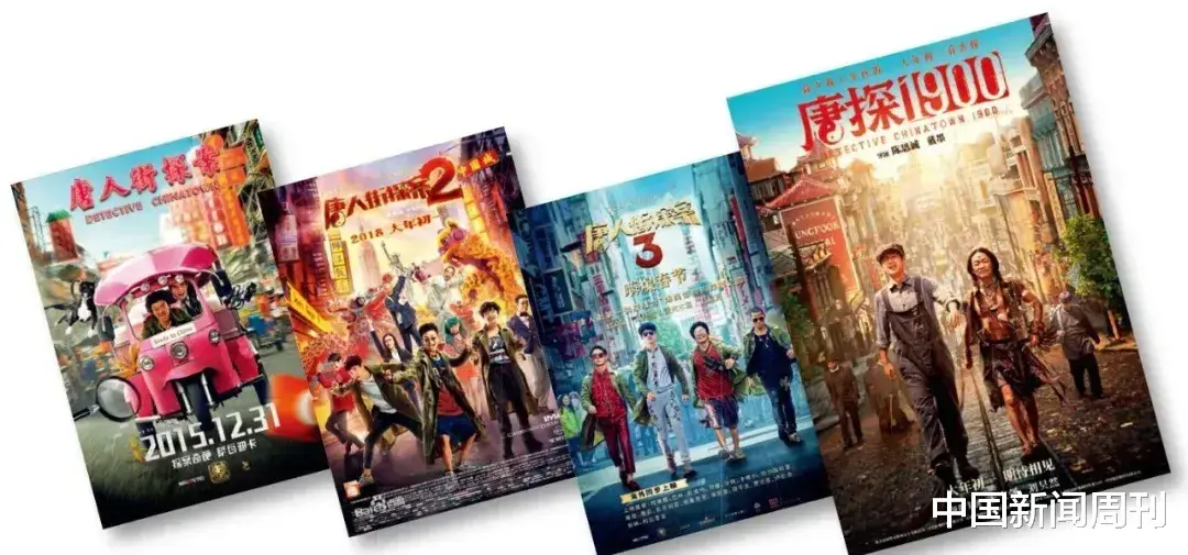从左至右:《唐人街探案》三部曲海报、《唐探1900》海报。