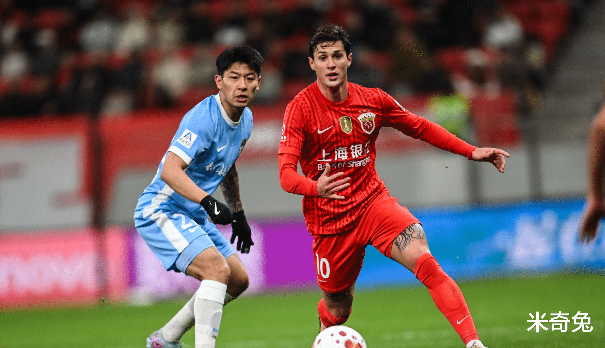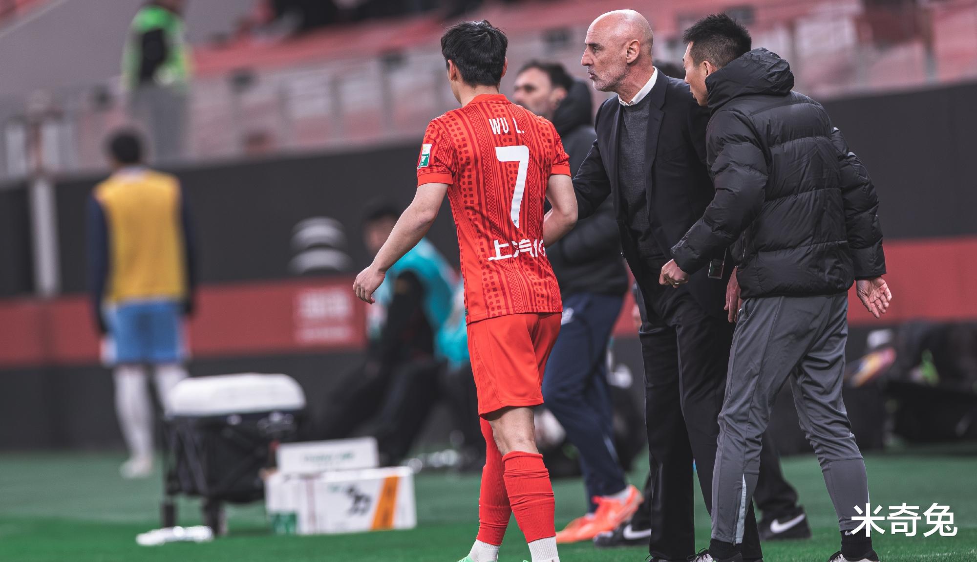 虽然在武磊出场之前,上海海港已经取得2比0领先,不过球队依旧踢得有点紧,甚至很多球员处于一种非常压抑的状态。