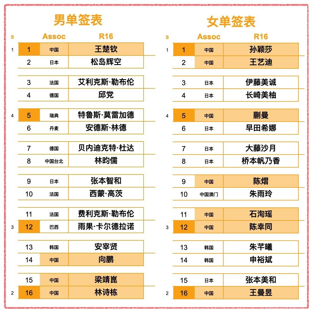 这场重磅对决的胜者将在下一轮面对日本选手,伊藤美诚与长崎美柚将自2018年以来首次交锋。蒯曼则抽到了艰巨的首轮对手——近期在法兰克福夺得个人首个WTT冠军赛冠军的早田希娜。大藤沙月与桥本帆乃香也同处这一半区。