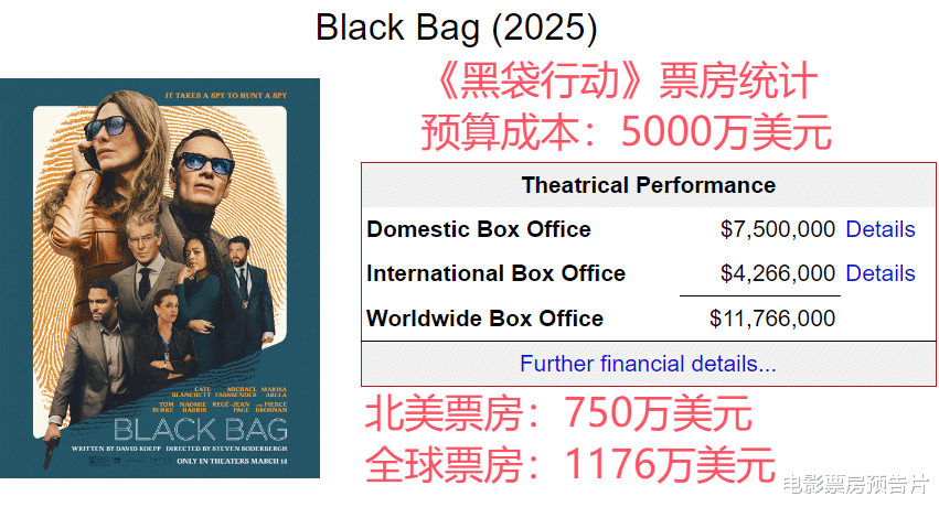 《黑袋行动》的命运或许再次证明,即便有顶级导演和演员加持,高成本间谍题材电影在当今市场中也面临着巨大的挑战。
