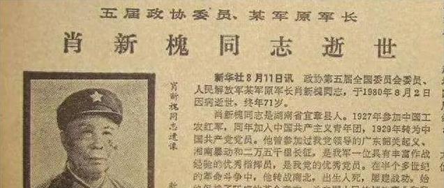 1980年,肖新槐因病去世。对许多人而言,他的离世并不是什么轰轰烈烈的事件,依然像大多数革命战士一样,安静地走完了人生的最后一程。