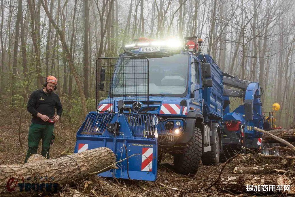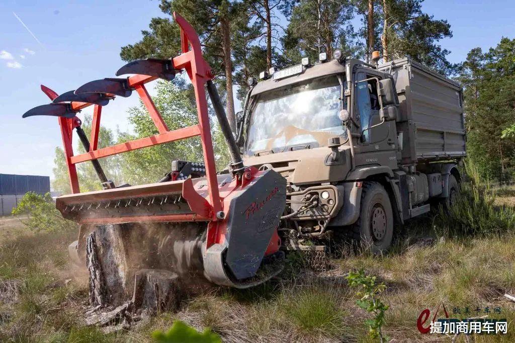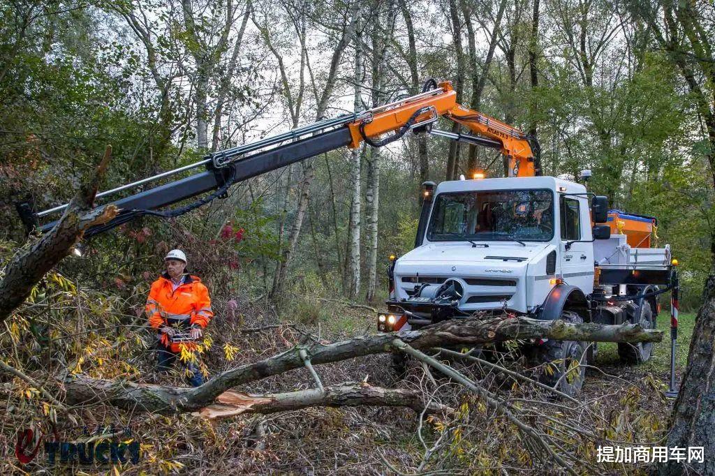 在乌尼莫克百系列家族中,最常用的便是其车身前部的动力输出轴。上图便是基于乌尼莫克百系列打造的割草机,上装由MULAG公司打造,可借助抽吸管道将割下的草收集进车辆后方的全挂车内,保障道路两侧的清洁安全。后部输出轴为抽吸系统提供了动力,无需额外改装便可驱动各类车载设备,这也是乌尼莫克百系列受欢迎的原因之一。