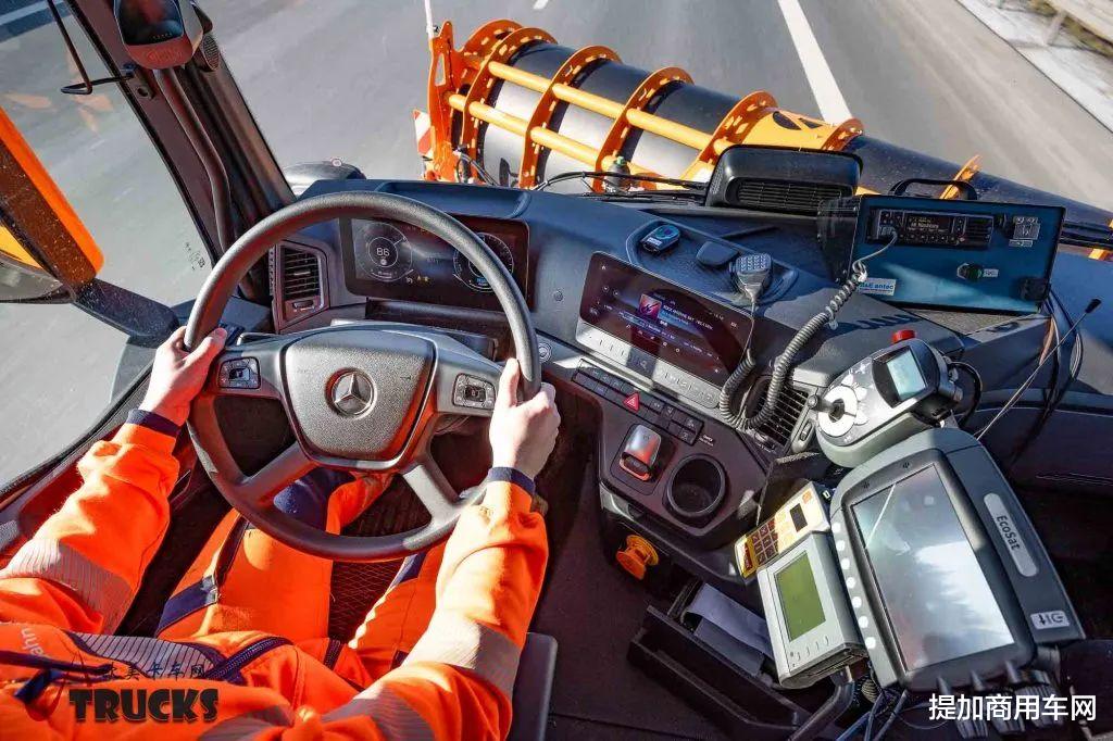 奔驰还将在本届Demopark 2025展会上带来Arocs 2948车型,采用6×4驱动形式,为冬季道路服务提供更强力量。不过要注意:这车的6×4可不是传统的双驱动后桥,而是驱动前桥+驱动中桥,尾桥不带动力,有助于提升车辆的通过性。