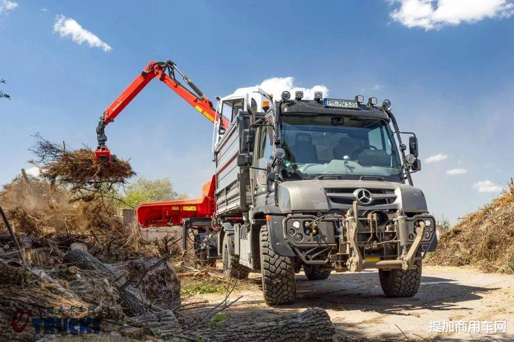 除百系列车型外,奔驰还在现场带来了一台乌尼莫克U 5023车型,配备随车吊及交换箱上装,凭借更强越野性能、更高有效载荷而适应更多场景。
