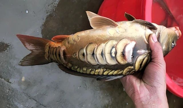 经过一番横向对比,他发现这竟然是一种叫做裸斑鲤鱼的淡水鱼,这真是一种罕见的捕获,让人惊喜不已!
