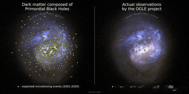 相比之下,OGLE天文学家只发现了13个微透镜事件。他们的详细分析表明,所有这些都可以用银河系或大麦哲伦星云中已知的恒星群来解释,而不是用黑洞来解释。