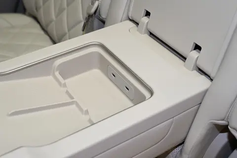 第二排的独立零重力座椅舒适性很高,支持电动调节、腿托和脚托调节,还能横向移动,调整范围很大,能找到最舒服的乘坐姿势。中间的过道宽度很可观,就算第二排座椅调到最靠后的位置,第三排乘客上下车也很方便,不用费劲侧身。第三排的空间表现超出预期,完全没有 “小板凳” 的感觉,我坐进去后,腿部离前排座椅靠背还有两拳左右的距离,头部空间也够用,不会觉得拥挤。座椅的靠背角度可以调到 130 度,长途乘坐的时候能有效缓解疲劳,1.75 米的成年人坐在这里也能找到舒服的姿势。