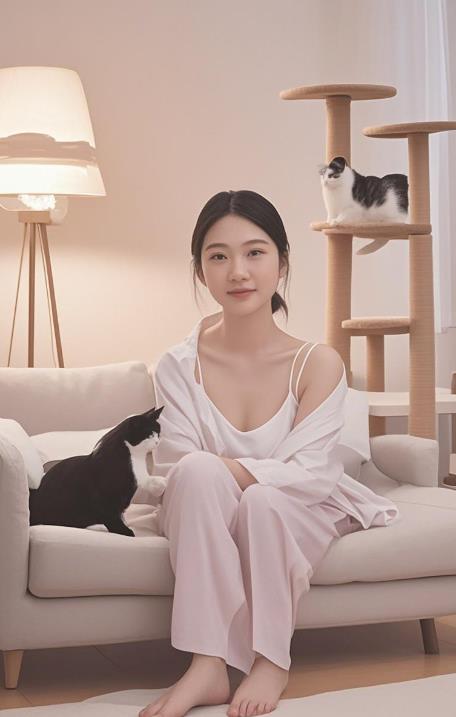 • 下装:灰色阔腿睡裤(选莫代尔面料,裤腰松紧带设计)
