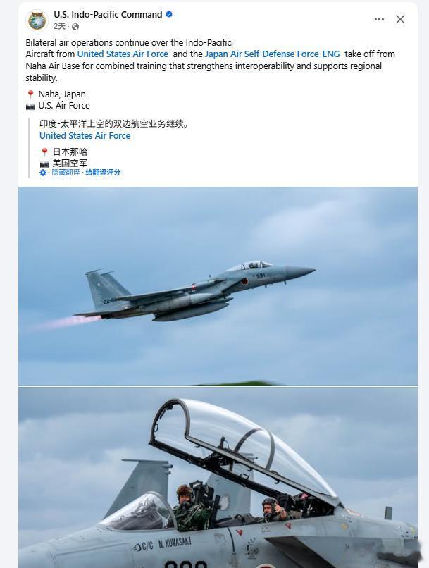 日本自卫队F-15J被照射当天,美军飞行员也在后座