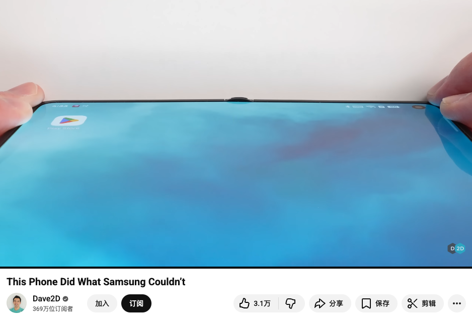 实际效果如何?大家可以参考以下知名海外数码博主Dave2D的视频展示,即使你从侧面看上去,那道讨人厌的“沟”都几乎隐形了!连Dave2D也说OPPO Find N6实现了三星无法做到的事。