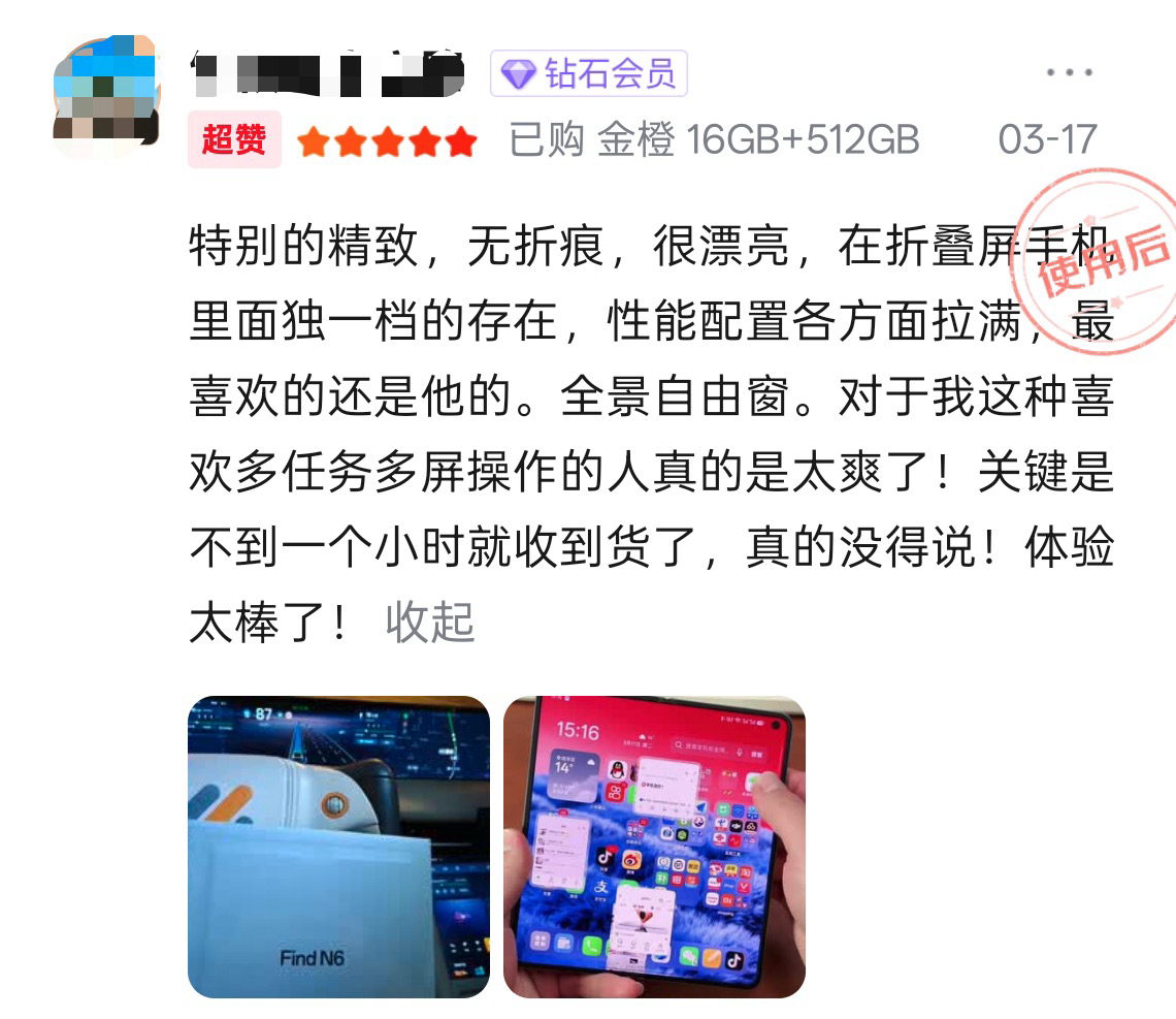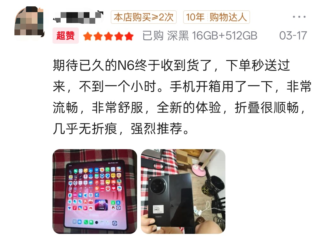 除此之外,第一批拿到OPPO Find N6的用户也是给予了好评,纷纷表示屏幕很平整,几乎看不到折痕。值得一提的是,OPPO Find N6 还首次通过德国莱茵 60 万次折叠久用平整测试,意味着不仅出厂屏幕平整,即使久用之后屏幕也依然平整。