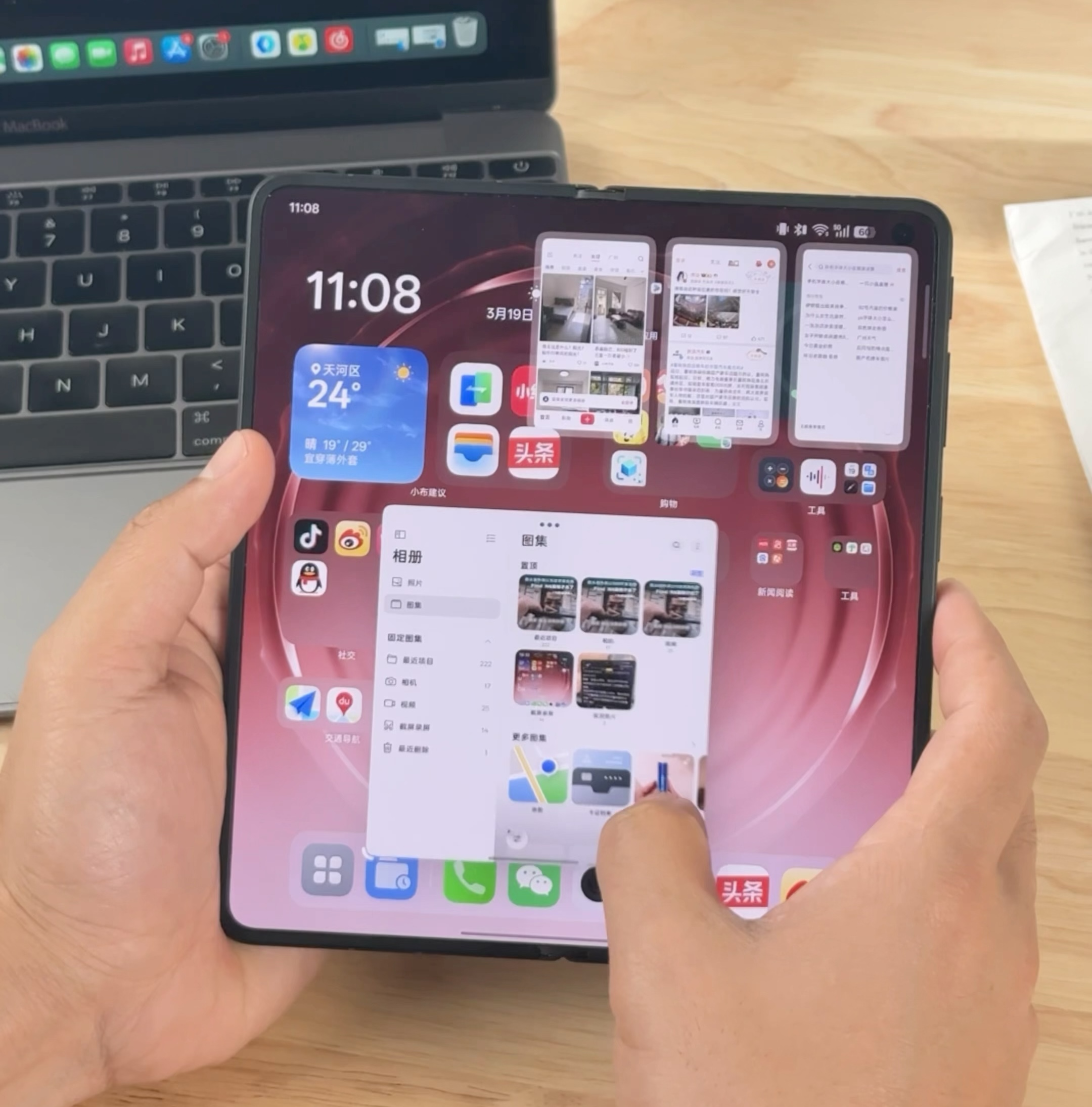 大屏操作效率也是折叠屏手机一直以来比较受关注的话题。OPPO Find N6在这方面也做得相当出色,带来了全景自由窗功能,应用全屏状态开启下,只需要在底角向内一推就可以切换成浮窗,然后拖动底角可以随意调节大小比例,就像PC一样。浮窗最多还可以开启四个,让大屏操作效率提升不少。