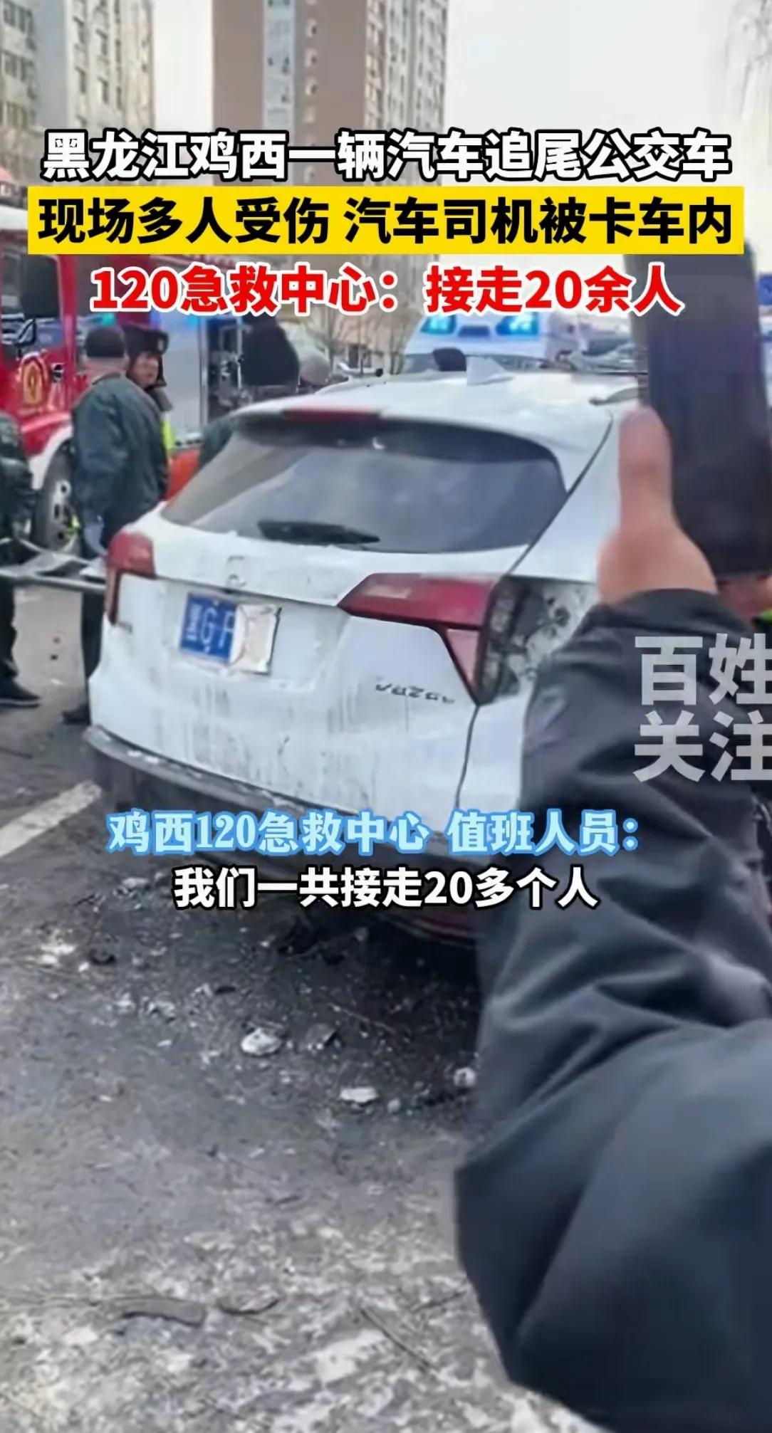 12月6日,据网友爆料称:黑龙江省鸡西市8时许一辆轿车追尾公交车,小轿车全车安全气囊弹开车辆损毁严重。可见现场有多震惊,另外有20余人受伤被送往医院医治。