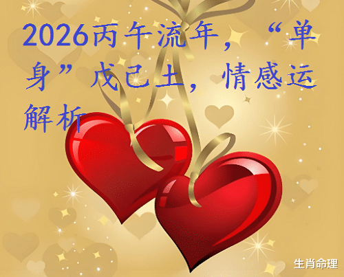 2026丙午年,丙火加午火,对于未婚戊己土男命来说,流年干支印星旺,流年无财星妻星,对于未婚的日干戊己土女命日主来说,流年无木,也无官星夫星,下面来看看,2026丙午年,单身未婚的日干戊己土男女的情感运如何?姻缘旺不旺?