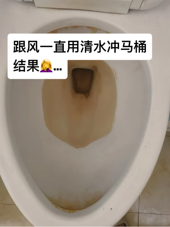 光靠纯粹的清水➕冲力,其实根本就解决不了马桶表面的水垢以及尿渍细菌等,所以大家一定要舍得花钱做清洁杀菌工作。