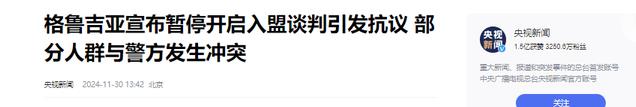 央视新闻2024-11-30——格鲁吉亚宣布暂停开启入盟谈判引发抗议 部分人群与警方发生冲突