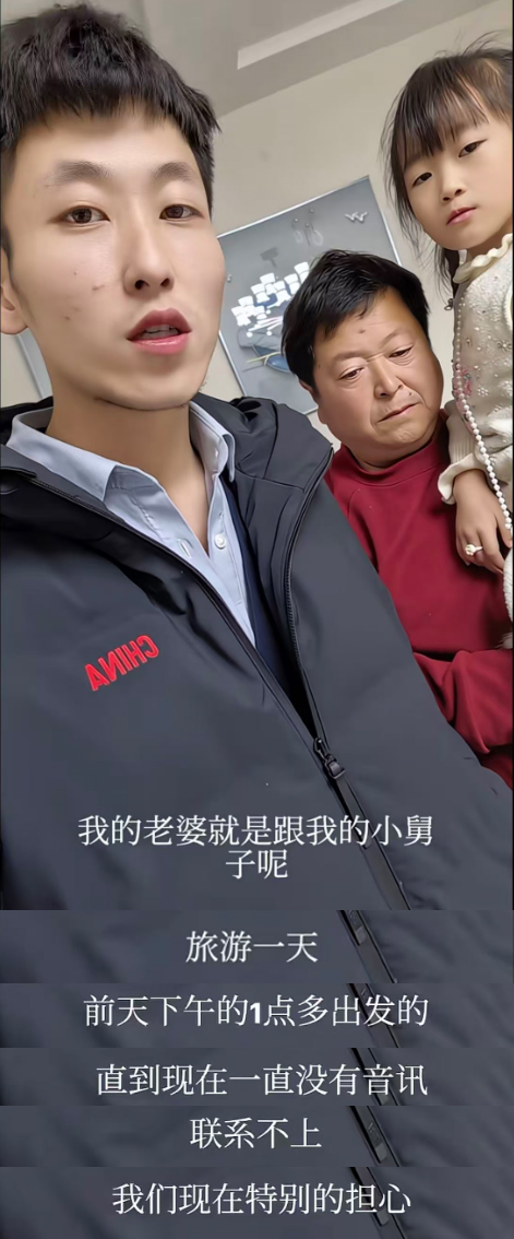 12月5日,南义发视频告知,他的妻子和小舅子出去旅游一天,就在隔壁的城市,前天下午1点多出发的,直到现在都没有音讯,联系上不,南义非常担心妻子的情况,于是发布了一条找人动态。