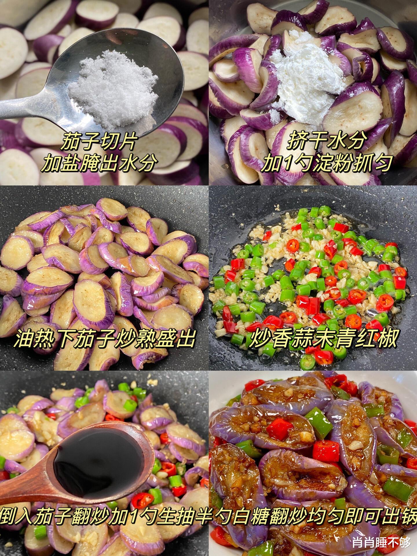 食材很简单,茄子、青红尖椒、大蒜、淀粉、盐、生抽、白糖、食用油,就这些。茄子尽量选那种紫得发亮、表皮光滑的,新鲜着呢。