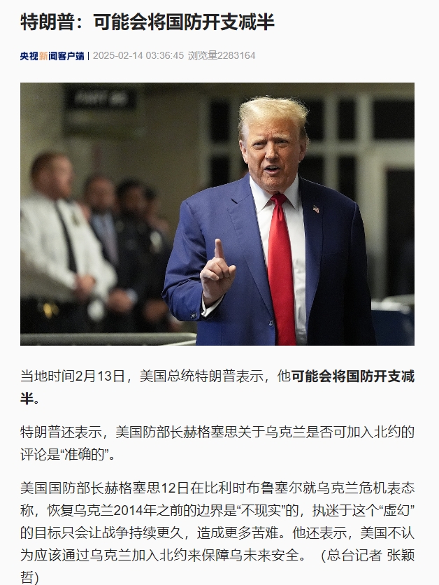 就在我方讨论之际,特朗普明确指出,他极有可能大幅削减美国的国防预算,仅保留其总额的一半。
