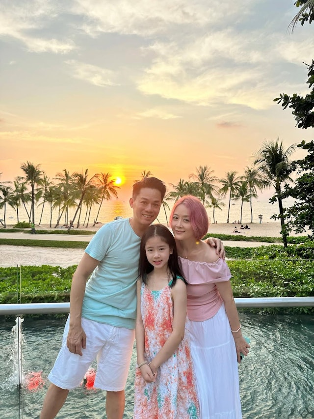 原来,姚乐怡趁着农历新年假期,与圈外商人老公吴俊匡及10岁女儿吴芊憧,一家三口飞往越南富国岛贺岁。