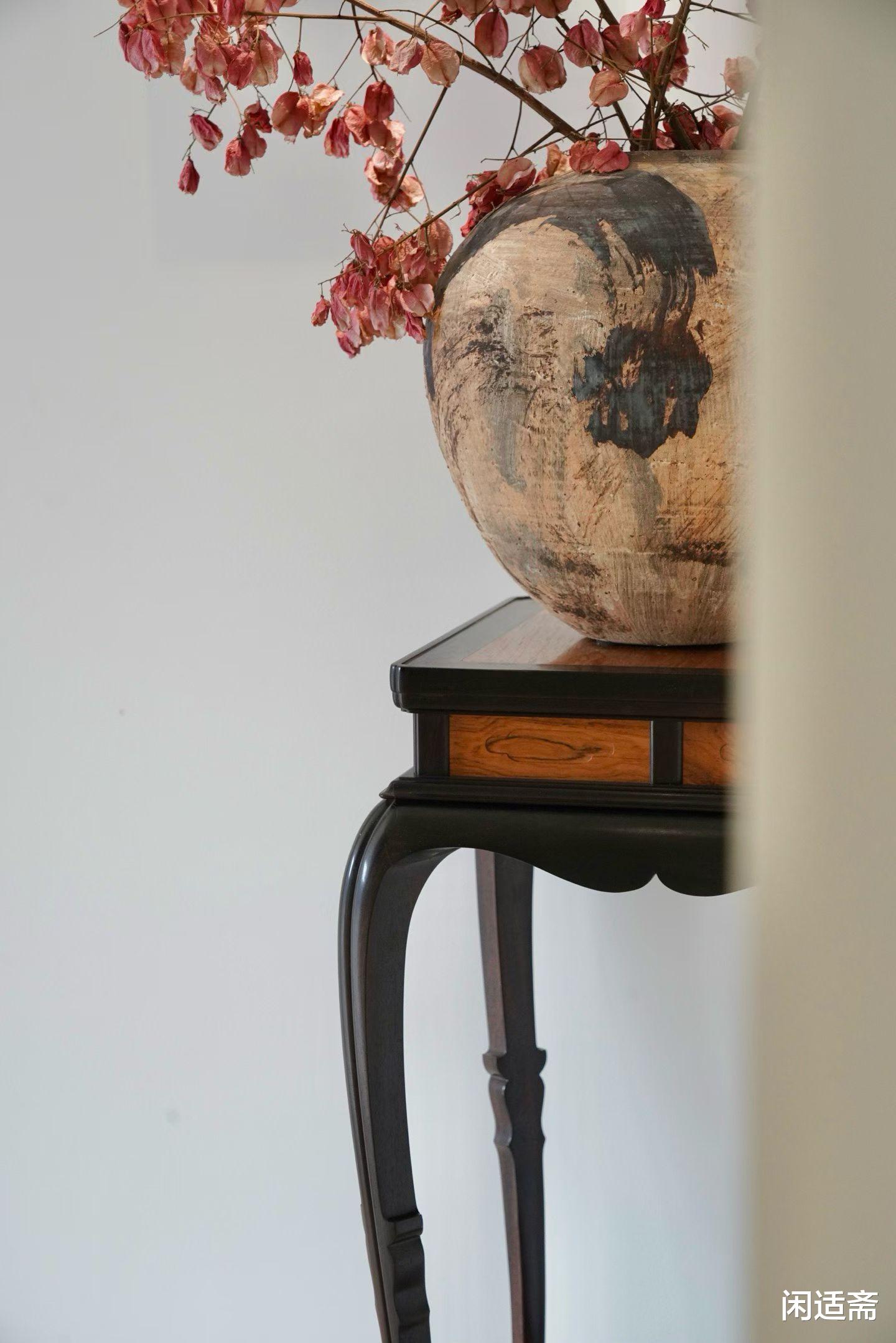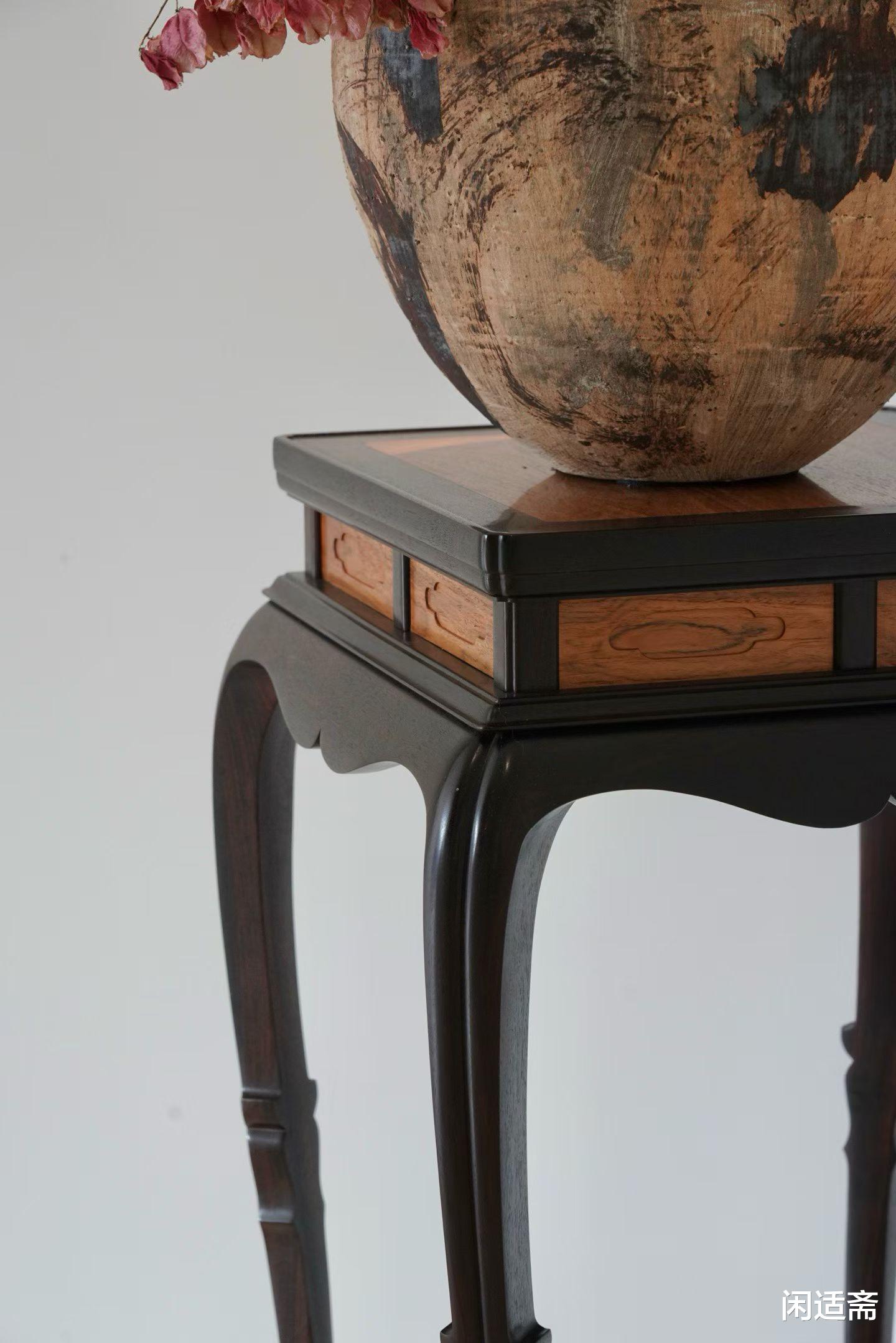 整器无冗余雕饰,以材质之美、线条之韵取胜。从面板圆润边缘到三弯腿婉转弧度,每一处线条流畅顺滑,尽显匠人精准把控力。这种“以线塑形”的设计,让香几兼具实用与美学底蕴,温润内敛却自带气场。