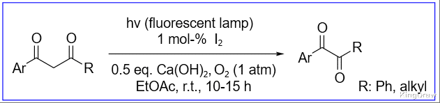 Direct Synthesis of 1,2-Diketones by Catalytic Aerobic Oxidative Decarboxylation of 1,3-Diketones with Iodine and Base under Irradiation of Fluorescent Light
