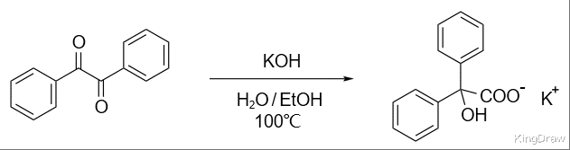 这个重排在有机合成上用为 α-羟基酸的制法之一。偶苯酰在乙醇中用 KOH 催化,于 100℃ 温度下可顺利重排。产物二苯乙醇酸是药物安胃宁的中间体。