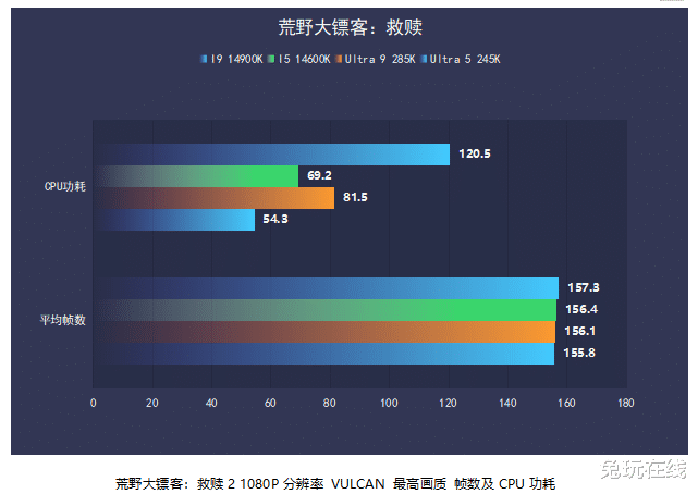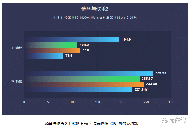 可以看出,不论是在3DMark FireStrike和TimeSpy测试中还是游戏方面,这一代英特尔酷睿Ultra 200S处理器的性能方面表现都还是可圈可点。在游戏《骑马与砍杀2》和《荒野大镖客:救赎2》等的实际测试中,本代处理器在基本持平上代游戏性能的同时,功耗大幅下降了大约30%-40%,在能效上的提升非常巨大。