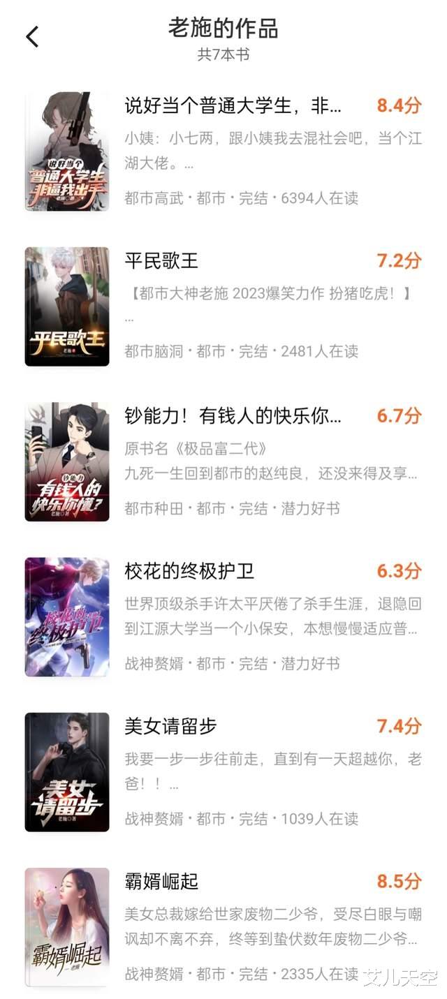 老施则是去了番茄,在那边写了《说好当个普通大学生,非逼我出手》《平民歌王》两本小说。