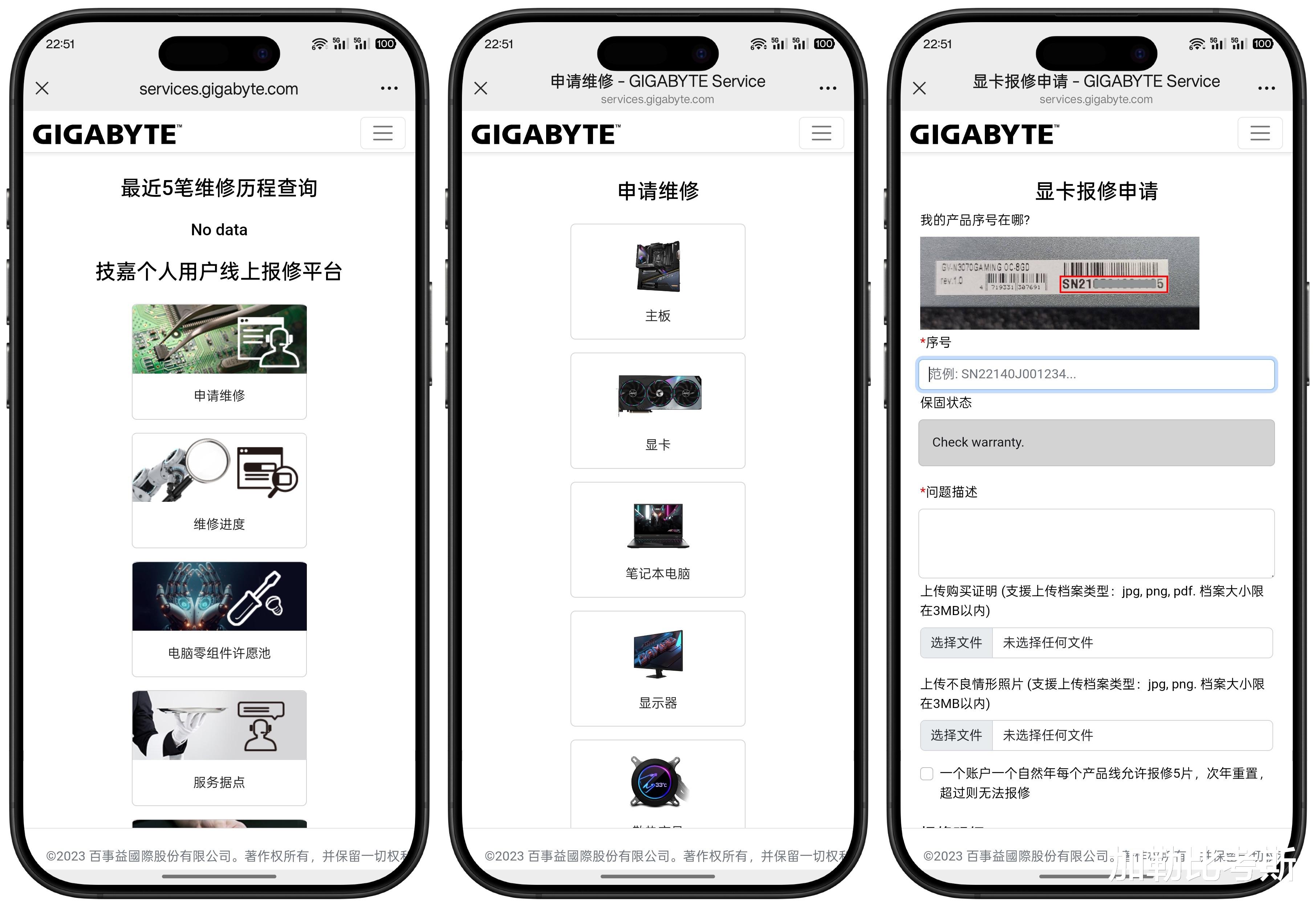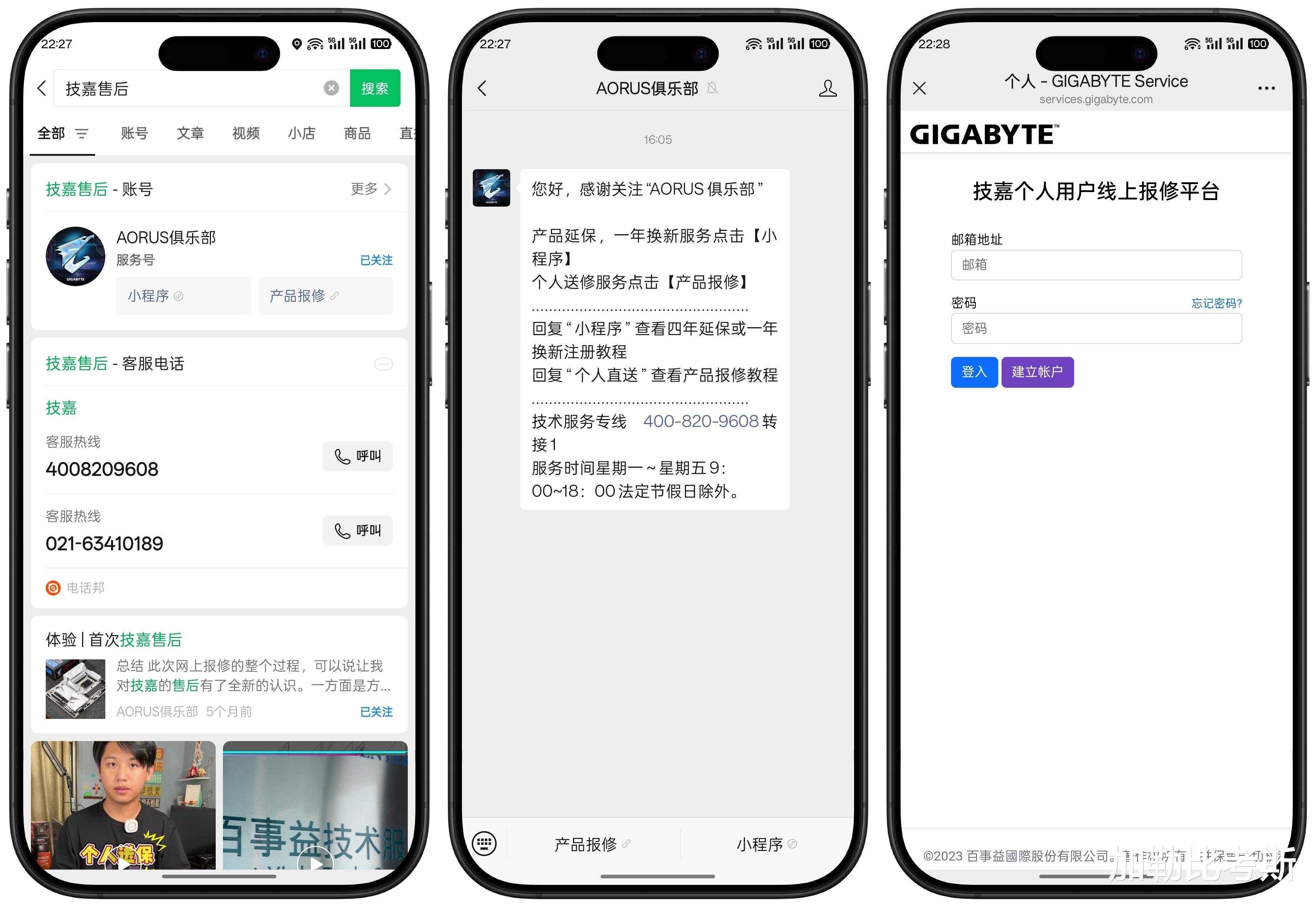 我按照教程,在公众号上搜索技嘉售后,公众号上的“AORUS俱乐部”里注册了个人账号,据说官网也行,然后选择“申请维修”,选择“显卡”。